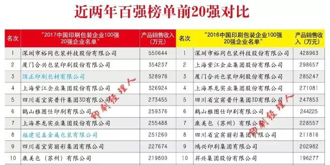 最新2017中國印刷包裝企業(yè)100強